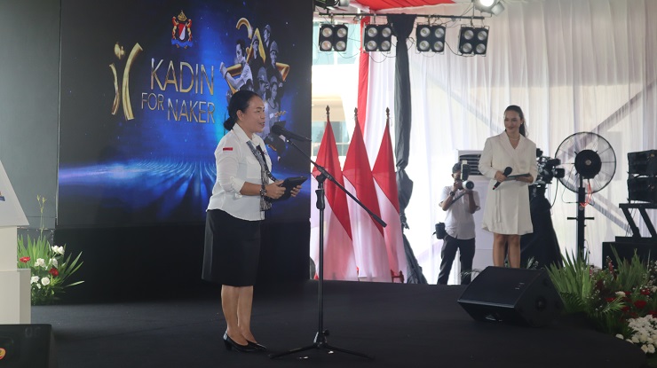 On this occasion, Elly Rosita Silaban, President of KSBSI was given the first opportunity to deliver his remarks. Elly said, KSBSI welcomed the collaboration between employers, the government and labor unions, especially in launching this Kadin for laborers.