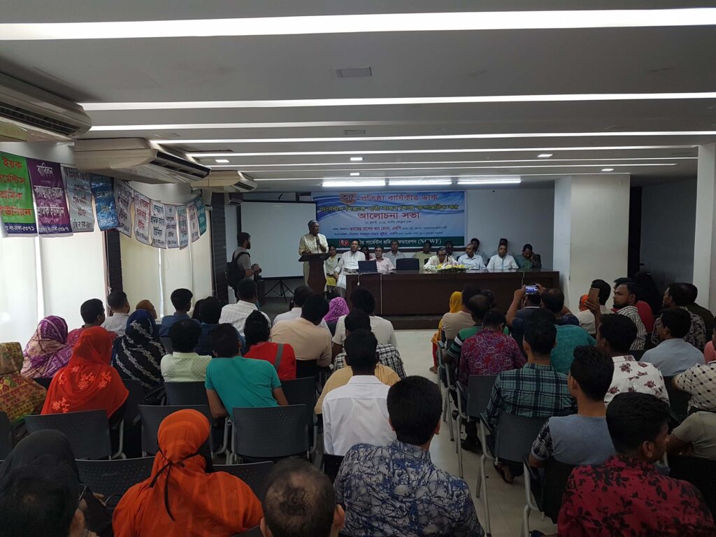 On 22nd July-2019 AMIRUL HAQUE AMIN, President of the National Garments Workers, NGWF, addressing the discussion meeting in the National press club, Dhaka on the occasion of the 35th founding anniversary of the National Garments Workers Federation. Former minister Rashed Khan Menon M.P was the chief guest. Among others IBC secretary general Salauddin Swapon , Senior vice president of the National federation JSF , S.M.Zakaria, Students Unity of Bangladesh Motaleb Hossain Zuel , trade union leaders of different sectors like Building Construction, Shop Employees, Otto tempo otto Rikshaw , Bread Biscute Confectionary, Grameen Telecomunication, Grameen Comunications and Garments textile expressd there solidarity with the NGWF. Main Slogan was Transform the Bangladeshi Garments Textile industries as Woman Friendly Industry.